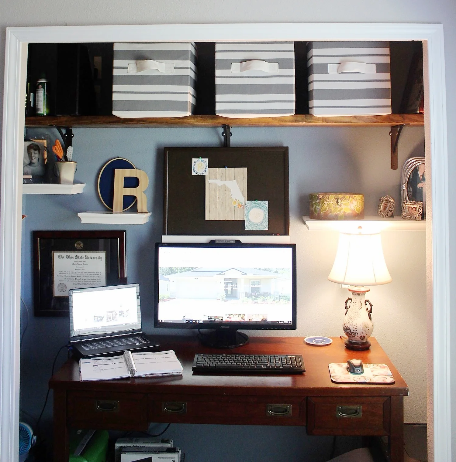 Tiny office closet office home office space home office design home office decor house 7 closet organizing hacks you'll actually want to try.