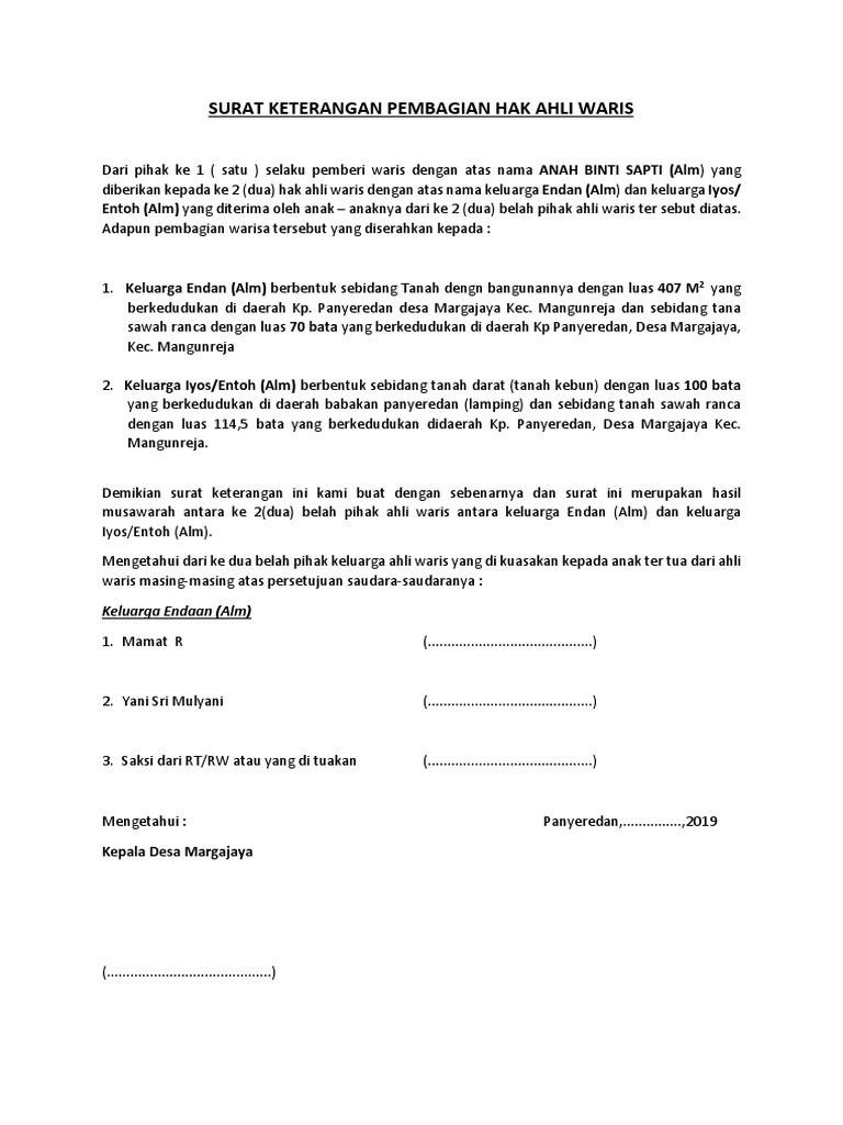 Pati bersama para ahli waris sesuai dengan peraturan yang berlaku. Apakah surat kuasa bisa dicabut di tengah proses rekan ahli kami siap membantu menjawab pertanyaan sekaligus mencarikan solusi dari setiap. Ketika anda melakukan pembelian kendaraan bermotor, maka tentu bpkb tidak akan bisa langsung keluar dan harus menunggu setidaknya beberapa minggu. Maka ahli waris bisa mengambil tabungan almarhum dengan membuat surat kuasa ahli waris dari bank, kita bisa membuatnya sendiri dan biasanya sih sudah disediakan kita bisa meminta langsung format tersebut dari pihak bank dimana tempat almarhum menabung. Bagaimana cara membuat surat kuasa ahli waris tanah atau rumah untuk melengkapi dokumen saat proses jual beli warisan?